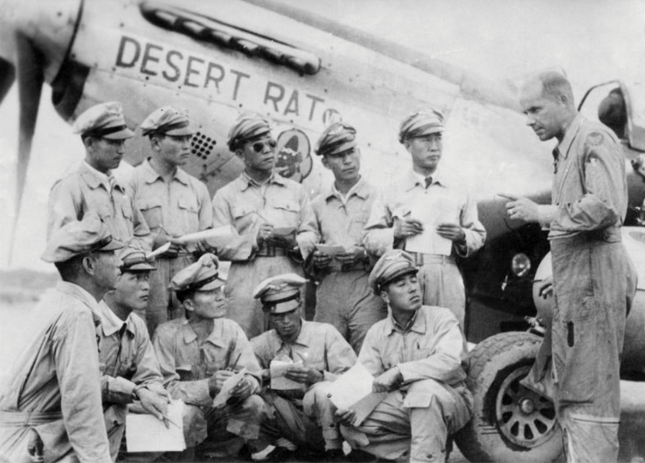 한국전쟁 발발 이틀만에 공군 열 분(아래 사진)이 일본으로 건너가, 기존의 훈련수준으로는 말도 안되는 엄청난 기체인 머스탱에 도전합니다.