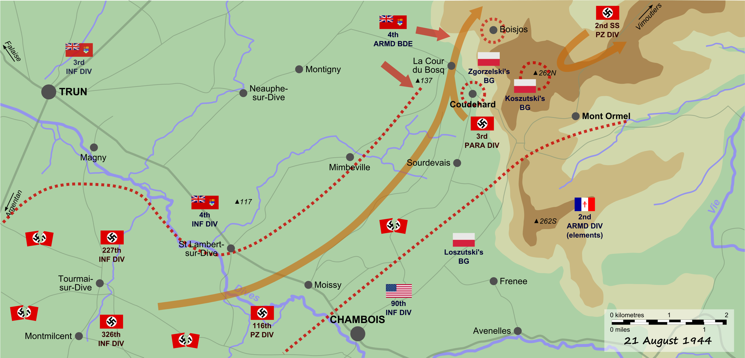 늦은 오후가 되자 2SS전차사단은 더 이상 공격하지 않았다. 몽 오르멜에서 폴란드군을 밀어내지 못했어도 모든 화력을 자신에게 돌렸기 때문에 상당히 많은 병력이 탈출할 수 있었다. 8월 21일, 캐나다군과 미군이 폴란드군에 합류하면서 팔레즈 포위망이 완성되었다.