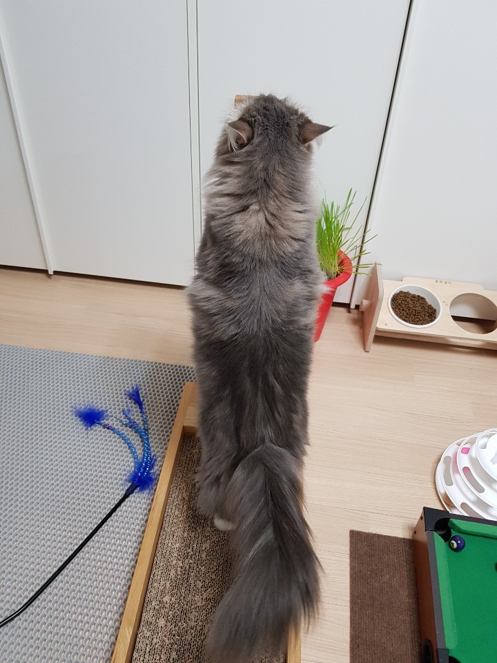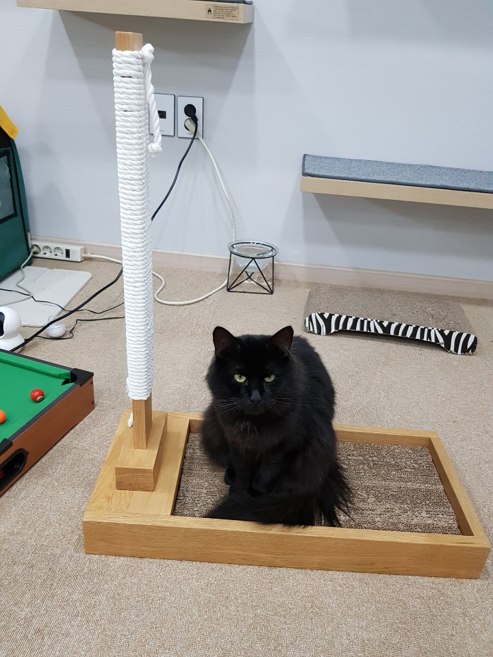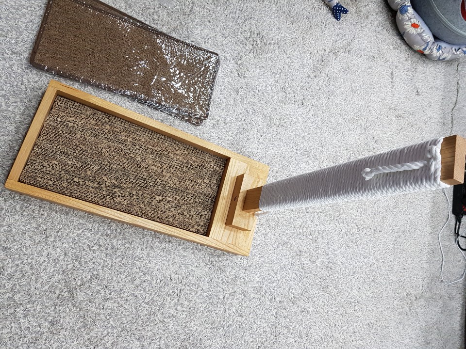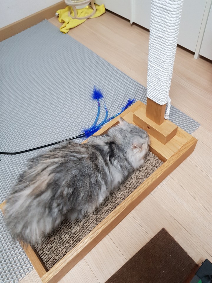 혹시나 초보집사가 이 글을 본다면, 스크래처는 반드시 필요합니다. 고양이는 본능이나 재미로 발톱을 갈기때문에 스크래처가 없으면 가구나 이불 등이 망가집니다.