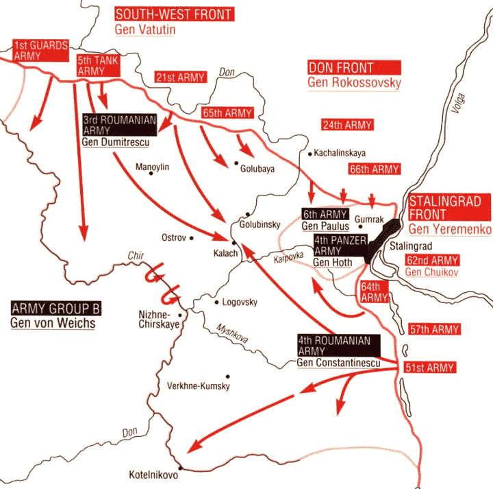 만슈타인의 돈집단군은 1월초에 급히 퇴각해 간신히 전선을 이었다. 돈집단군의 핵심은 호트Hoth의 4전차군이었지만 57전차군단, 공군야전사단과 루마니아 4군의 패잔병이 전부였다.