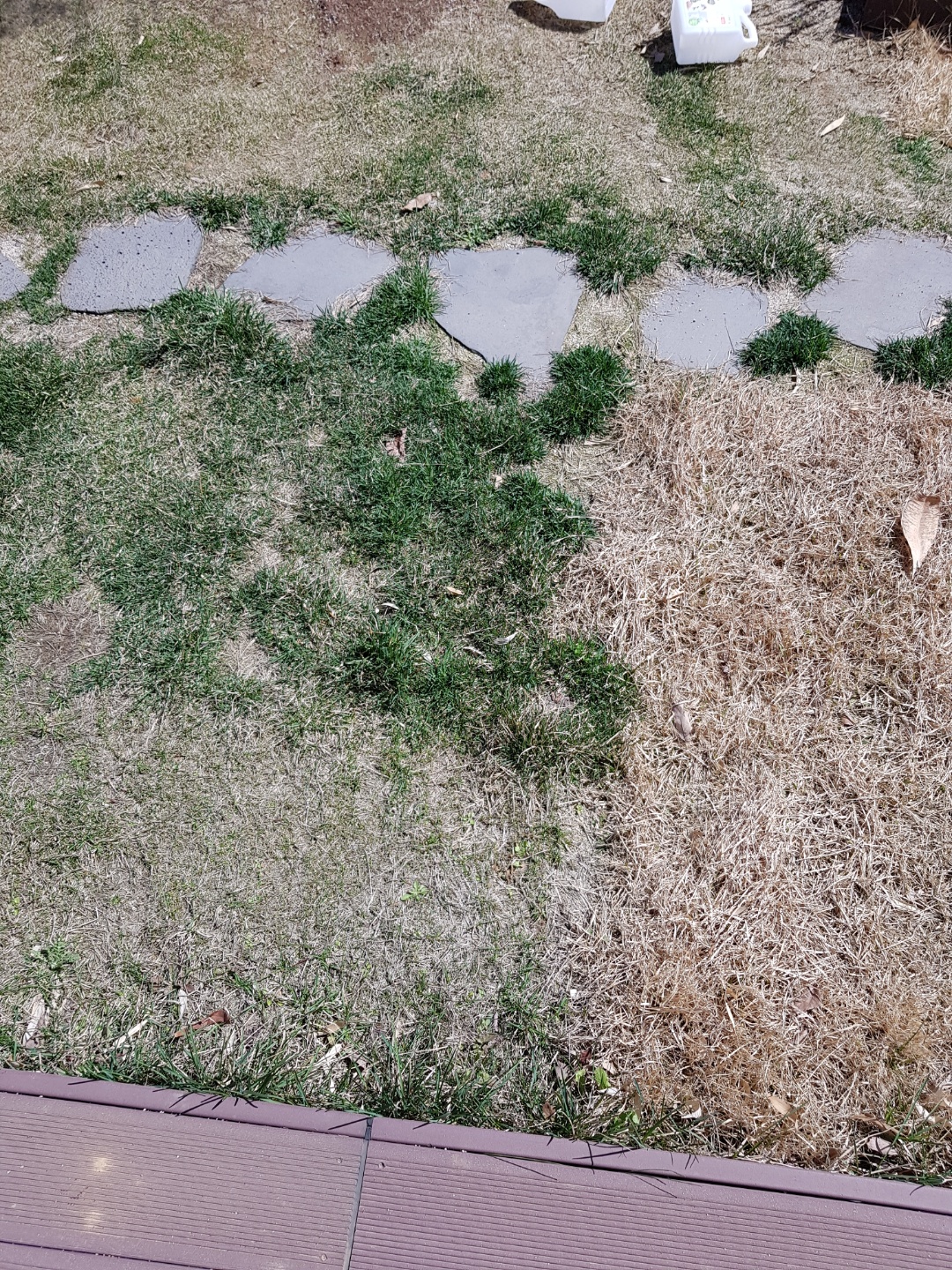 날이 따뜻해졌는데도 아직 동면에서 깨어나지 않은 한국잔디입니다.