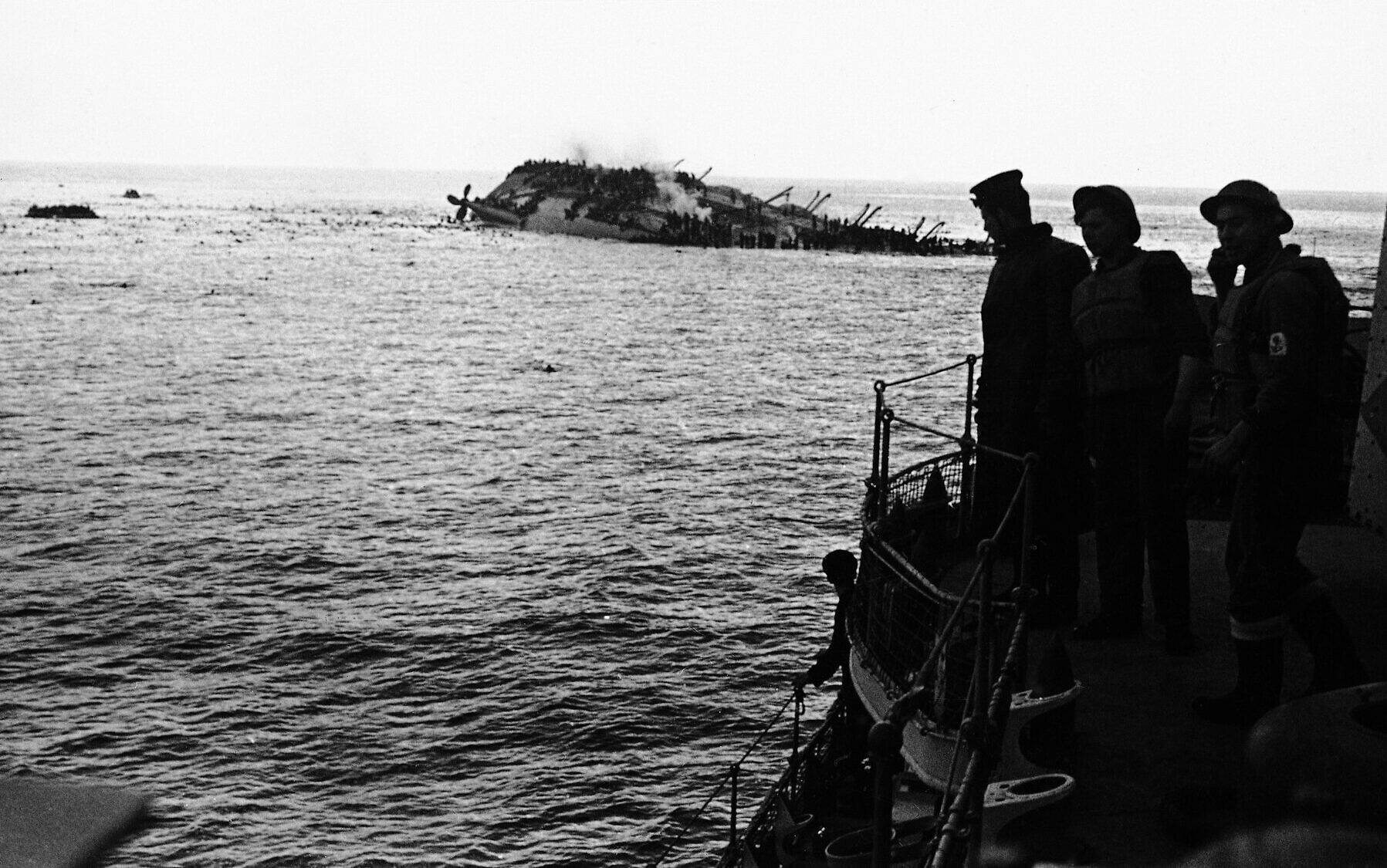구축함 HMS 해번트Havant는 너무 많은 병력을 태워서 배 전체가 카키색으로 뒤덮였는데 폭탄을 기관실 승무원이 전원 사망했다. 기뢰제거함 2척이 옆에 다가오자 기울어진 선체에서 병사들이 뛰어내렸다. 해번트는 침몰했고 34명이 죽었다.