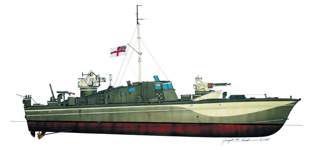 1940~41년 겨울, 여전히 S보트의 위협이 상당했고 영국해군은 1940년 12월에 6모터건보트(MGB)전대를 창설했다. 3척은 루이스Lewis경기관총 4정과 올리콘Oerlikon 1문을 장착했고 프랑스해군용으로 건조된 5척은 루이스 4정과 .303 브라우닝Browning 기관총 4정을 장착했다(그림 참조).