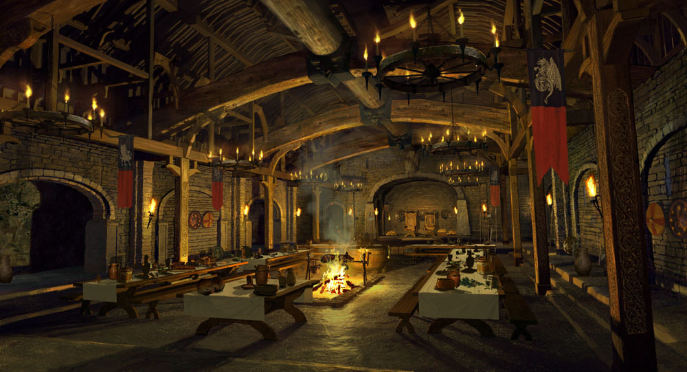 어둡고 더러운 움막에서 살지 않았고 서사시 베오울프Beowulf에 나오는 헤롯Heorot처럼 크고 화려한 홀에서 사는 경우가 많았다. 홀에서 축제를 벌이고 보물을 치장하고 무술을 뽐냈다.