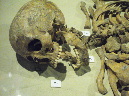 80대와 20대로 추정되는 여성 2명이 매장되어 있었습니다. 처음에는 젊은 여성의 쇄골이 부러져 있어서 인신공양으로 추측했는데 이후 조사에서 그렇지 않은 것이 밝혀졌습니다.