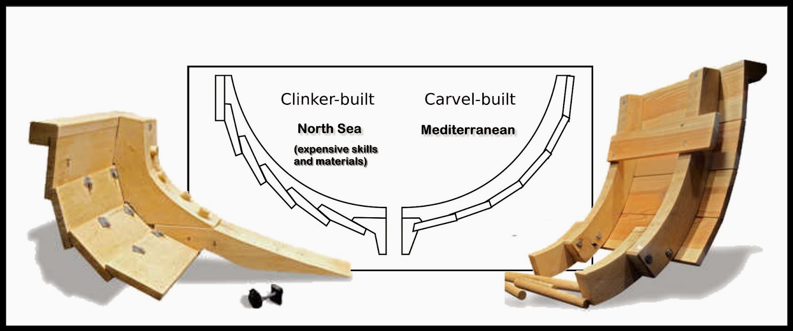 나무판을 겹쳐서 선체를 만드는 방식으로, 나무판 사이는 타르, 털과 이끼를 섞은 동물성 지방으로 메웠다.