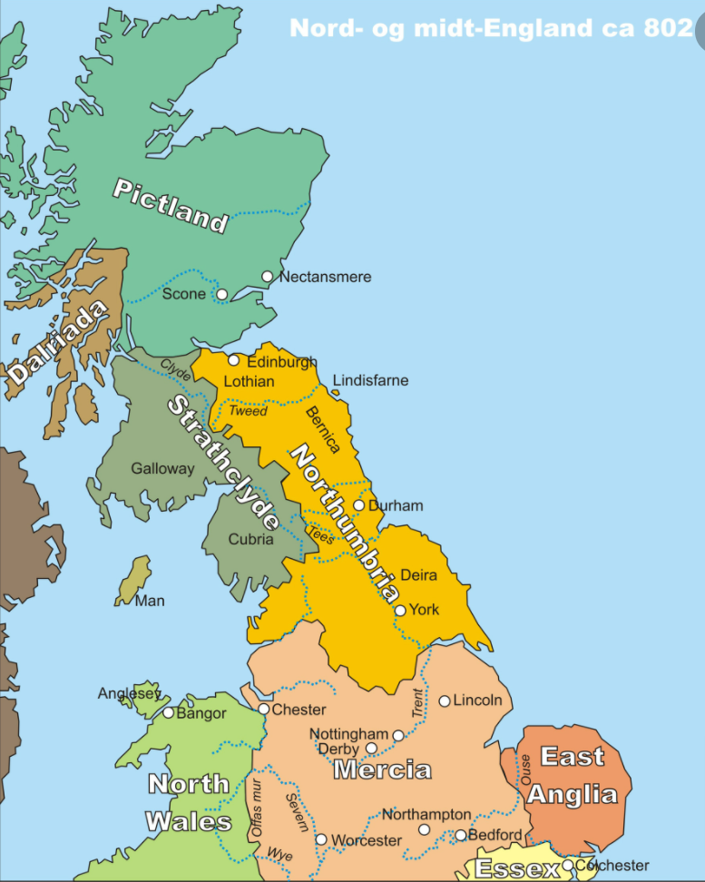 9세기, 노르웨이 바이킹은 맨섬Isle of Man와 오크니Orkney, 셰틀랜드Shetland와 같은 스코틀랜드 섬을 정복하고 정착했다. 그들은 Eóganan mac Óengusas와 같은 픽트인Picts 왕을 죽였고, 픽트인과 게일인Gaels가 연합해 900년에 알바Alba왕국을 건국했고 Cináed mac Ailpín (케네스 맥알핀Kenneth MacAlpine)이 첫 번째 왕위에 올랐다. 나중의 스코틀랜드가 된다. I