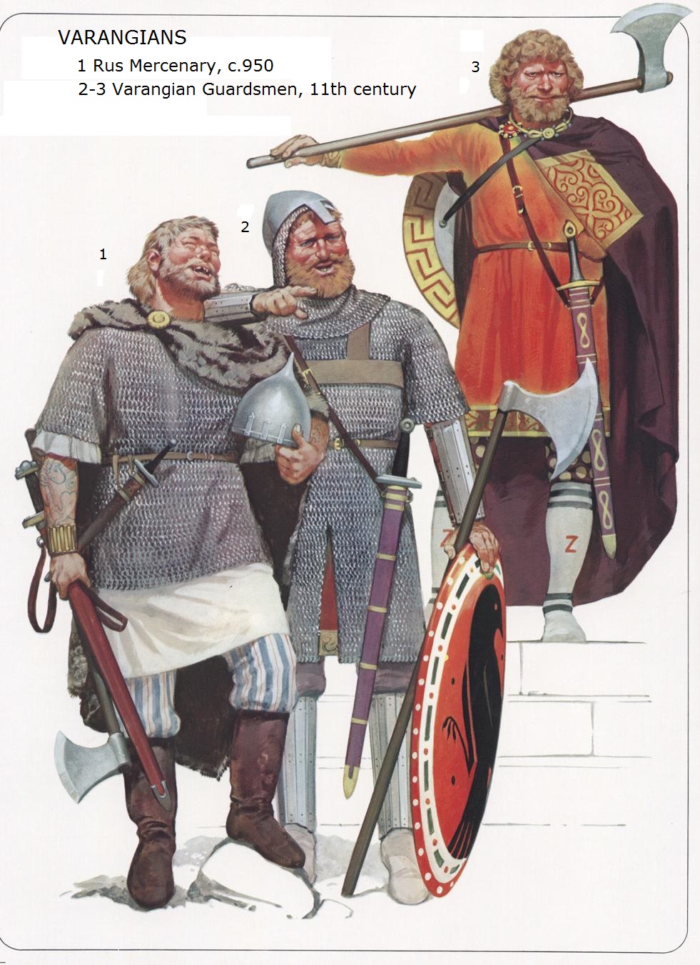 비잔틴제국 내분으로 황제가 궁지에 몰리자 블라드미르가 6,000명 정도의 병력을 빌려주었고 그 일부가 정착해 제국말기까지 근위대가 됩니다.