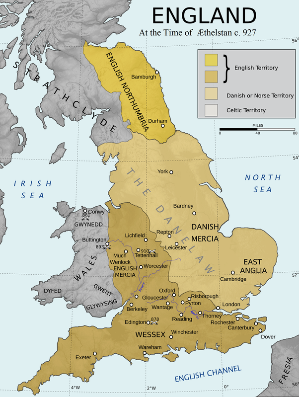 애설레드Æthelred왕과 동생 알프레드대왕Alfred the Great의 웨섹스만 완전 정복을 피했다. 878년 에딩턴Edington전투에서 알프레드가 승리를 거뒀고 바이킹왕 구스럼Guthrum은 기독교로 개종한 후에 웨섹스에서 퇴각했지만 데인로Danelaw의 영토는 요크셔Yorkshire에서 이스트 앵글리아까지 확장되었다. 그렇지만 927년, 알프레드의 손자 애설스탄Æthelstan이 요크를 탈환하고 앵글로-색슨 영국의 첫 번째 통일국왕이 되면서 데인족의 위세는 크게 기울었다.