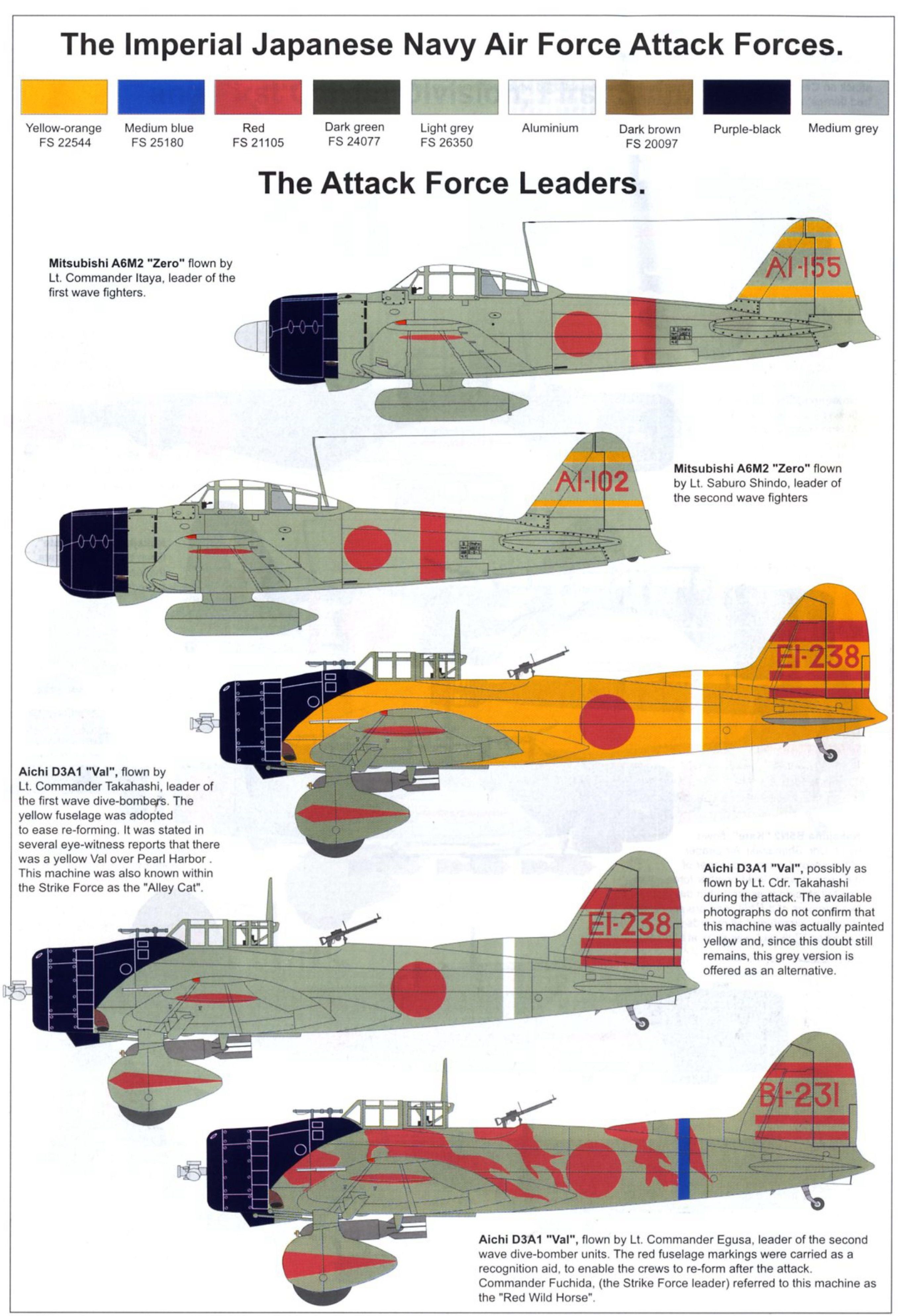 함대는 오아후Oahu 북쪽 370km로 다가갔다. 12월 7일 새벽에 나카지마 B5N 케이트Kate 뇌격기 40대, 급강하폭격기 49대, 아이치 D3A1 발Val 급강하폭격기 51대, 호위전투기 미츠비시 A6M 제로Zero 43대가 이륙했다.