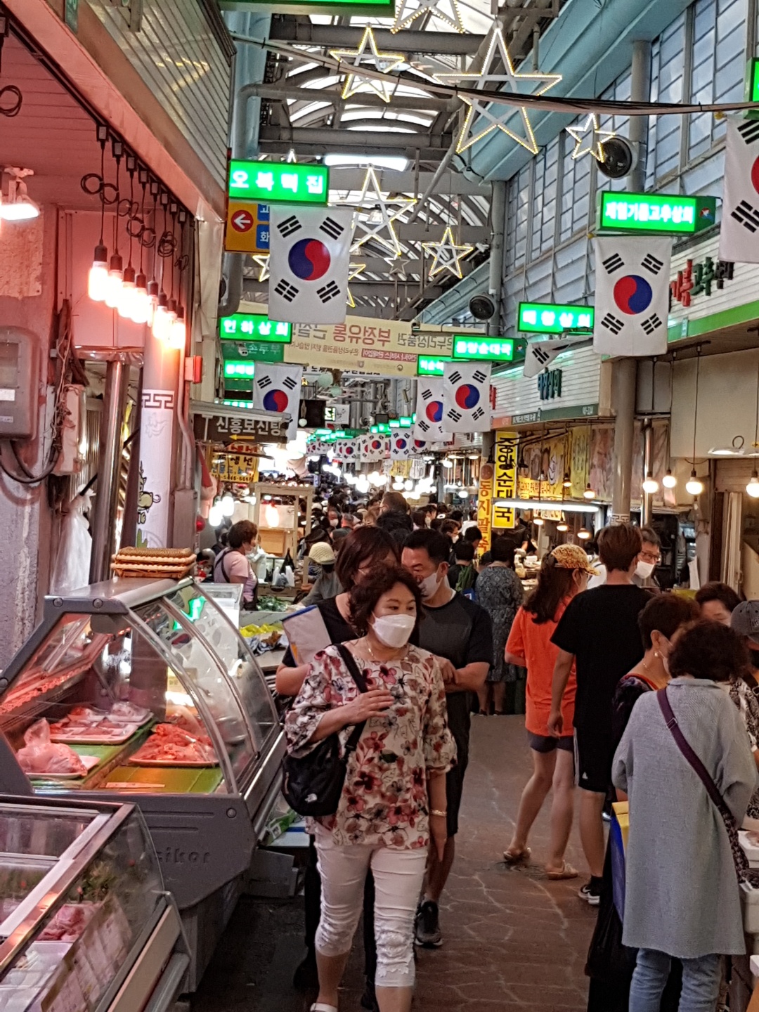지금 사진은 떡가게 앞을 뚫고 들어와서 조금 여유있을 뿐이고 반찬가게 등은 줄을 서서 기다려야 합니다.
