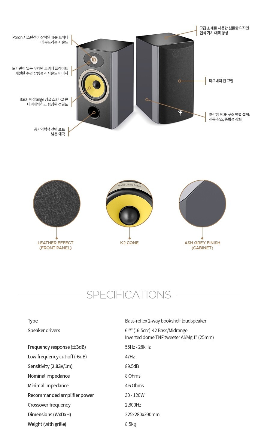 K2 906은 놀라운 어쿠스틱 성능, 하이엔드 재질과 유토피아의 애시 그레이 마감으로 어떤 공간에도 어울리는 북셀프입니다. K2 콘의 특징인 정확성, 역동성과 고출력 모두를 담고 있는 2웨이 스피커입니다.
