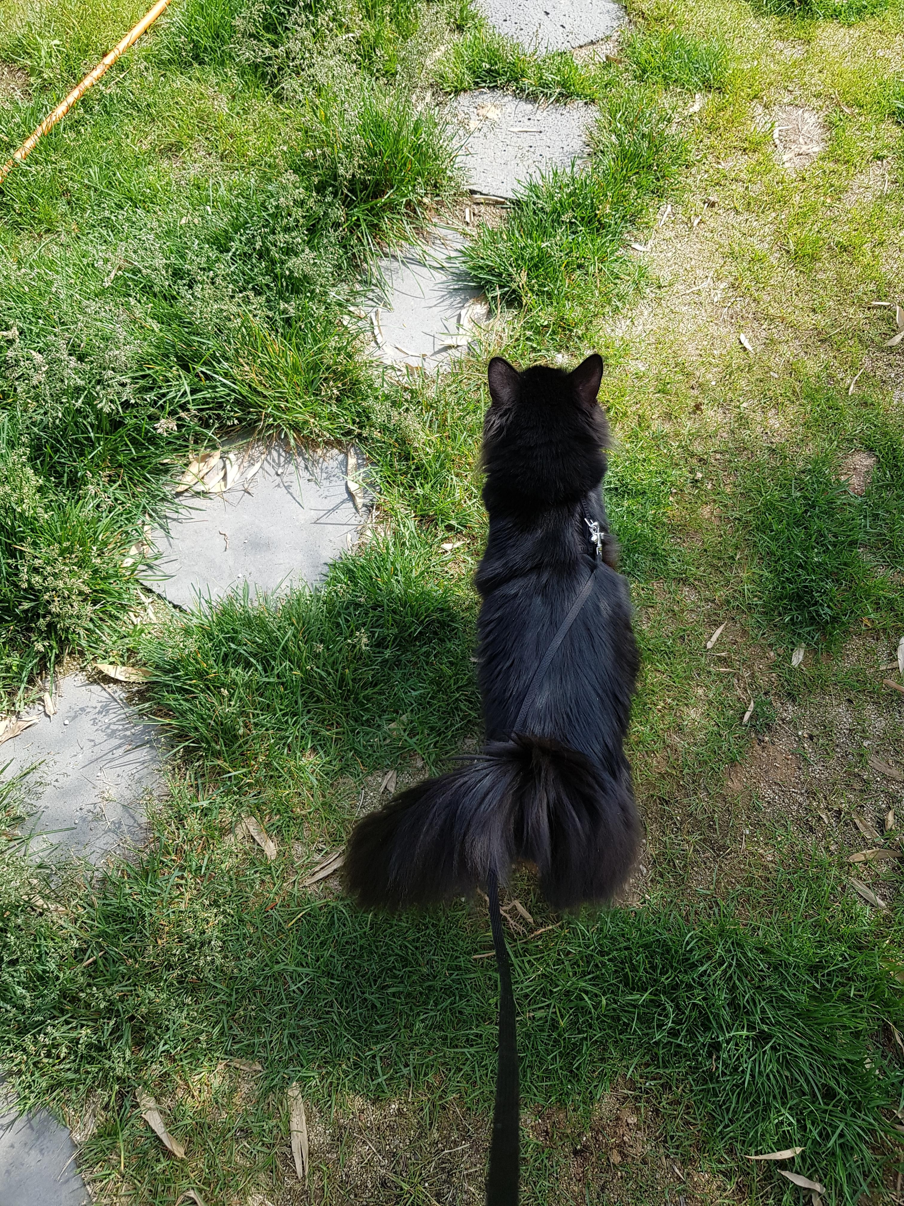 시베리안 부부인 볼칸과 페르세야는 원래 야생품종답게 하니스 훈련없이 바로 산책이 가능했습니다만, 주변에 개를 풀어 놓아 남의 집 정원까지 침범하게 방치하는 진상이 많고 밥먹으러 오는 길냥이도 많아져서 더 이상 산책을 안시키고 있습니다.