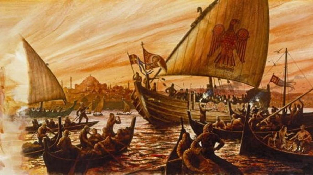 959년, 바이킹함대가 지중해를 거쳐 콘스탄티노플리스로 접근했고 860년 6월 8일, 콘스탄티노플리스를 공격했다. 비잔티움함대는 아랍과 바이킹을 대비해 에게해와 지중해에 있었기 때문에 미하일Michael 3세가 소아시아에서 직접 군대를 지휘했다.
