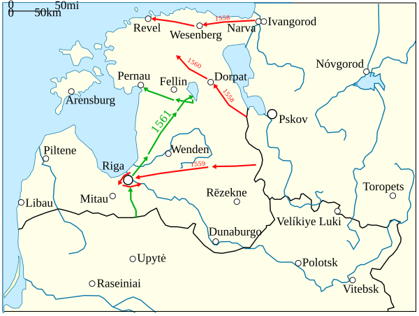 1558년, 이반뇌제Ivan the Terrible가 현재의 라트비아Latvia와 에스토니아Estonia 일부인 리보니아Livonia를 공격해 리보니아전쟁(1558~1583)이 벌어졌고 스웨덴, 덴마크, 리투아니아와 폴란드가 참전했다.