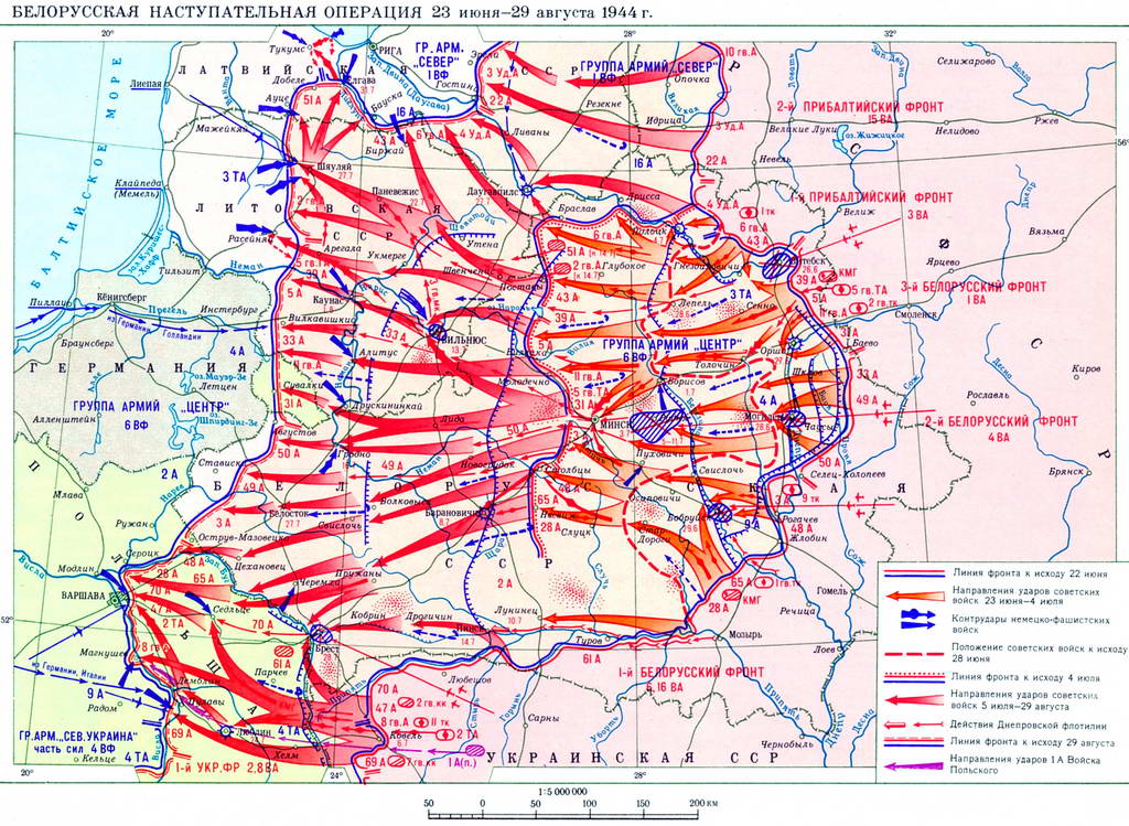 독일전선에 큰 구멍이 생겼고 러시아군은 단 5주 만에 700km를 전진해 바르샤바 외곽까지 접근했다. 8개월 후, 베를린의 문앞에 섰다.
