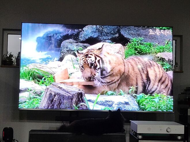 유투브에서는 호랑이보면 달아나던데, 이 녀석은 그냥 즐기고 있군요.