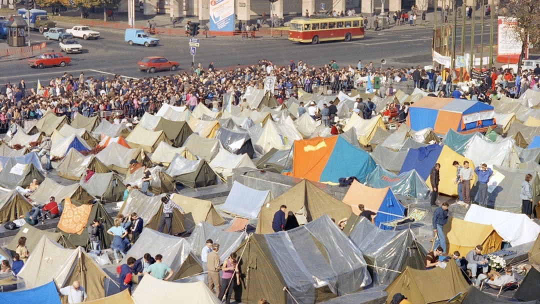 정부가 5만명을 동원해 관제시위를 벌이자 모든 대학이 동맹파업에 동참했고 의회로 몰려들었다. 1990년 10월의 시위는 나중에 1차 마이단Maidan(광장이라는 뜻. 사진 참조)이 되었고 2004년, 2013년과 2014년에 2, 3차 마이단으로 이어졌다.