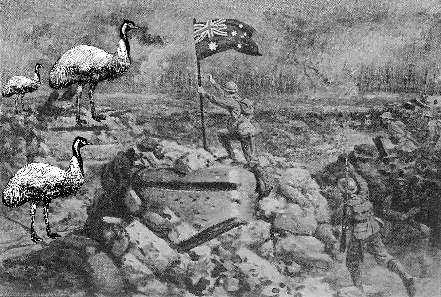 동물개체수 조절의 극단적인 예로, 1930년대 초에 호주는 기관총부대를 파견해서 겁 없는 새를 공격했다. 그렇지만 조니 윌크스Jonny Wilkes가 설명하듯이, 군은 적을 너무 과소평가했다.