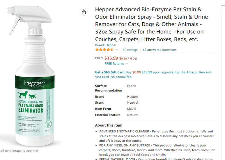 Hepper Advanced Bio-Enzyme Pet Stain & Odor Eliminator Spray.