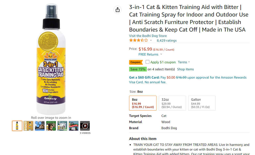 고양이, 가족과 집에 안전한 퇴치제가 최고다. 효과도 중요하지만 자국이나 불쾌한 향도 남겨서는 안된다. 우리가 추천하는 Bodhi Dog 3-in-1 Cat & Kitten Training Aid는 다양한 표면에 사용할 수 있고 순하면서도 효과적으로 차단한다.