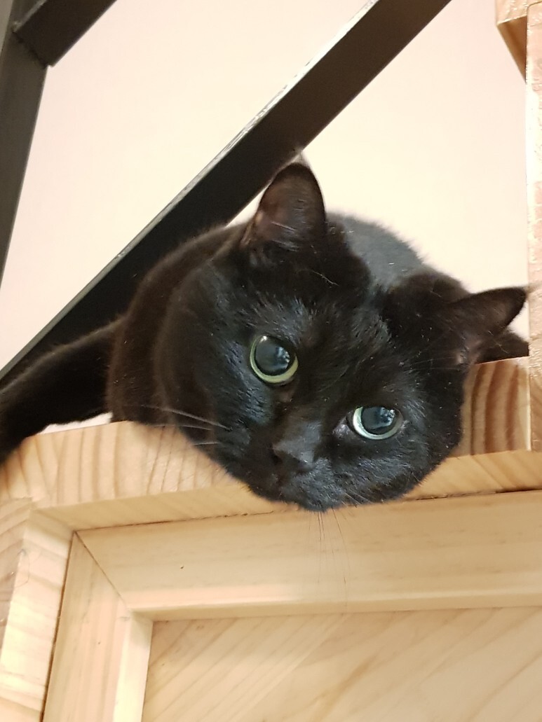캣타워에서 강제로 내려 놓았는데 순간 반전! 캣쇼 그랜드 챔프 감의 얼굴과 체격이었습니다. 이런 녀석이 쭈글이가 될 정도로 첫날은 스트레스가 심합니다.