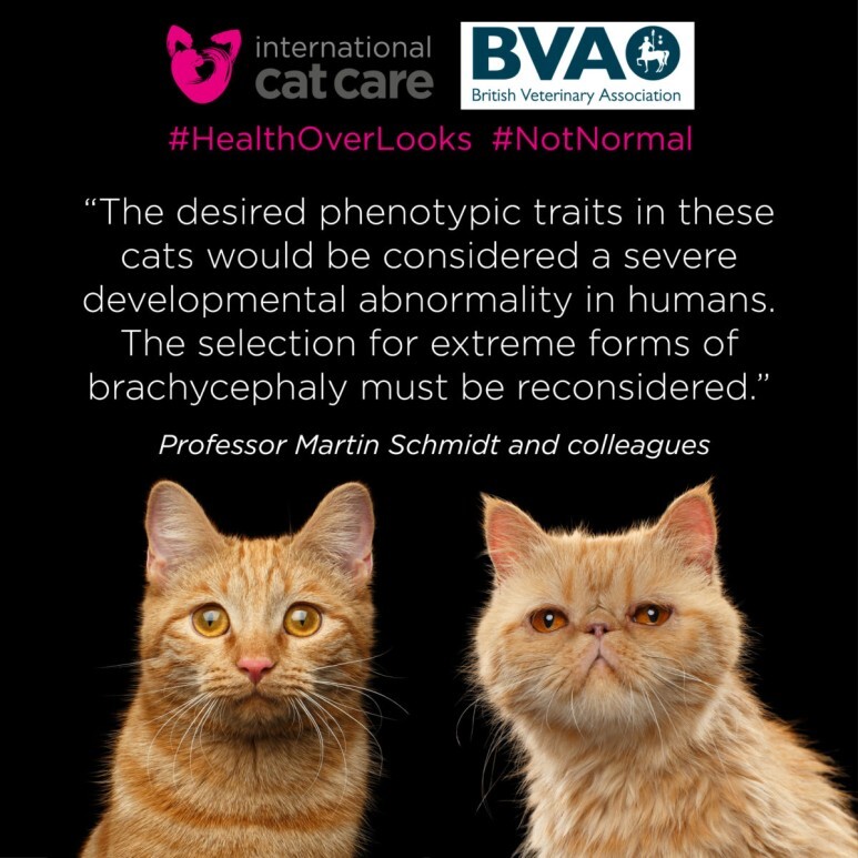 이상자세는 머리위치와 관련해 가장 중요하다. 납작머리Brachycephalic 고양이(사진 참조)는 새끼머리가 골반입구에 접근했을 때에 어려움을 겪을 수 있다. 쐐기모양의 턱이 없기 때문에 머리가 앞다리 사이나 가슴 쪽으로 치우칠 수 있다.