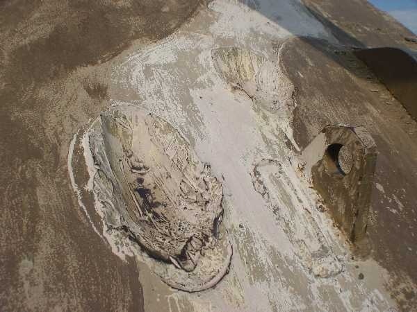 야크트타이거 전면장갑에 난 상처입니다. 이 전차는 전면에 3발을 맞았는데 모두 관통하지 못했죠.