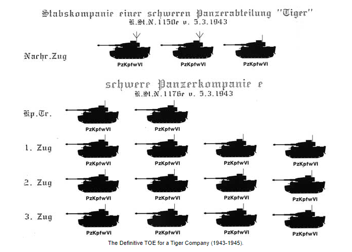 중대장 타이거 1대, 타이거 4대로 구성된 2개 소대, 3호전차 8대로 구성된 1개 경소대로 중대를 편성했고 각 소대마다 장교 2명이 배치되었다. 나는 셰르프소령의 제1소대 부소대장이었는데 전황악화고 장교 수가 줄었다.