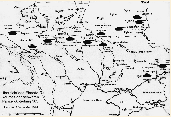 1943년 봄, U보트 전쟁의 붕괴와 함께 2차대전은 완전히 흐름이 바뀌었다. 더 이상 희망이 없어졌다. 우리는 독립중대로서 전선구원에 나서야했다. 중전차대대 502가 북쪽 레닌그라드 전선에 묶여 있는 동안 우리는 돈집단군Don Army Group돈에 소속되어 있었다.