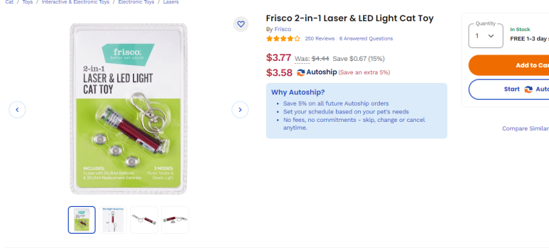 고양이와 함께 레이저를 사용해 볼 수 있는 가장 저렴한 방법을 찾고 있다면 프리스코 레이저가 저렴한 가격이다.