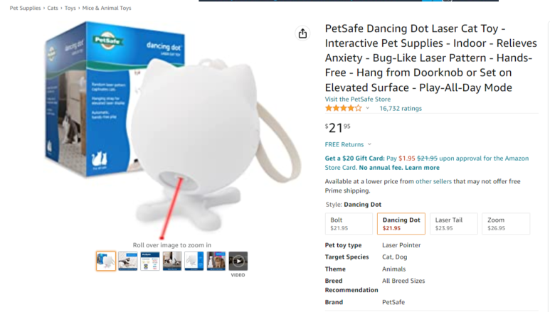 최고의 인터랙티브 레이저 고양이 장난감: 펫세이프 댄싱 도트 레이저 포인터 고양이 장난감PetSafe Dancing Dot Laser Cat Toy