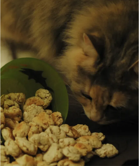 헤어볼에도 도움이 되는 DIY 고양이 간식? 고양이 보호자의 꿈이다. 브룸스틱 펫 트리츠Broomstick Pet Treats의 헤어볼 억제 고양이 간식은 현미가루에 호박 통조림, 달걀, 기름, 아마가루를 섞어 고양이를 위한 건강하고 맛있는 간식을 만들어 준다. 추가 간식을 원한다면 캣닙을 조금 넣은 후 조각으로 자르고 350도 오븐에서 15분간 굽는 것도 좋다.