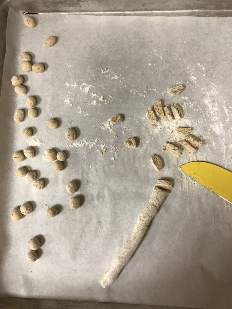 쉽게 만들려면 반죽을 뱀 모양으로 말아서 작은 조각으로 자릅니다.