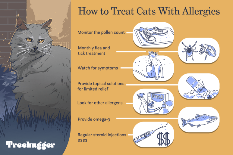 또한 벼룩 알레르기나 접촉성 피부염과 같은 일부 알레르기는 고양이가 나이가 들면서 더 심해지고 만성화된다. 수의사와 상의하여 구체적인 진단과 고양이의 성격을 고려해, 고양이의 알레르기를 관리할 수 있는 최선의 치료법을 결정한다.