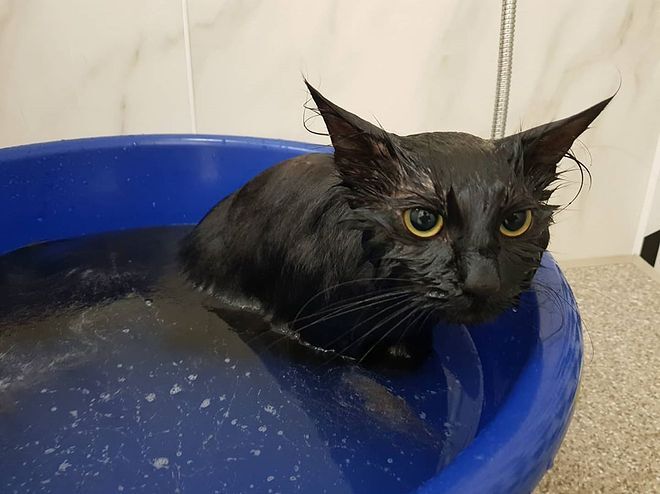 이미 설명했듯이 고양이는 스스로 몸을 청결하게 유지하는 능력이 뛰어나며 하루 중 최대 40%를 스스로 청소하는 데 사용할 수 있으므로 반드시 목욕을 시킬 필요는 없다.