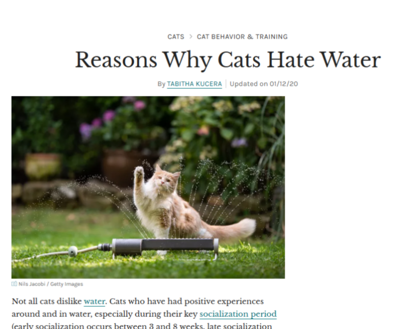 대피소 없이 폭우 속에 갇히거나, 물을 뿌리거나, 강제 목욕을 당하는 등, 많은 고양이가 물에 대한 경험이 부정적이다.