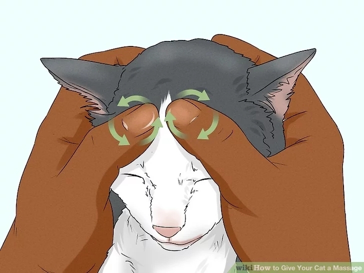 대부분의 고양이가 머리 마사지를 무척 좋아한다. 귀를 둥글게 문지르거나 목을 부드럽게 쓰다듬는 것은 고양이들에게 인기가 있다. 턱 아래쪽과 위쪽을 문지르고 쓰다듬는 것도 잘 견딘다.
