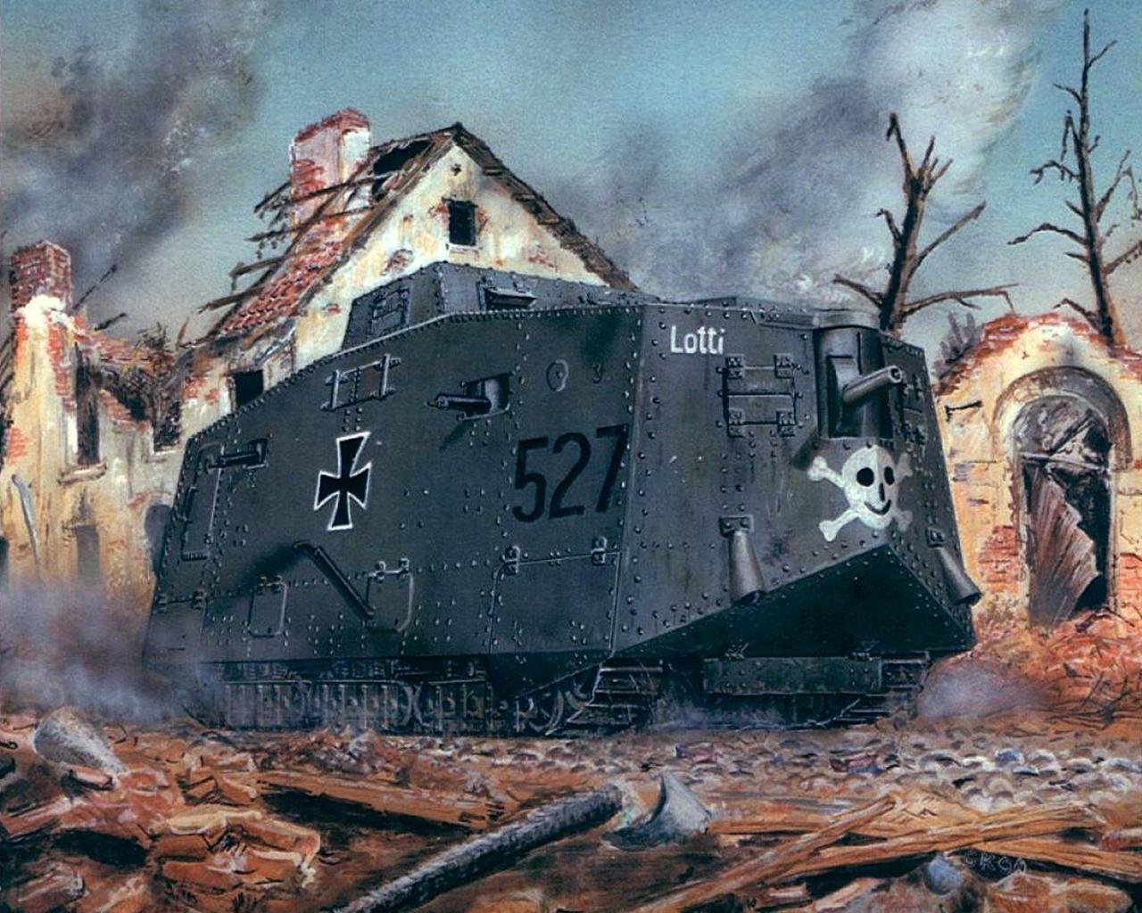 1917년 1월 A7V의 목조 모형이 제작되었고 100대를 주문했지만 실제로는 20대만 제작되었다. 이 전차는 1918년 루덴도르프 춘계공세Ludendorff Spring Offensive에서, 캄브레이에서 노획한 영국 전차와 함께 전장에 데뷔했다. 18명이 탑승할 수 있는 거대한 차체를 올려 거북이처럼 보기 흉하고 상부가 무거워 기동성이 많은 제약을 받았다. 57mm 주포와 기관총 6문으로 무장했고 다임러 100마력 엔진 2개로 움직였기 때문에 시속 15km로 영국 전차보다 두 배 빠른 속도를 낼 수 있었다.
