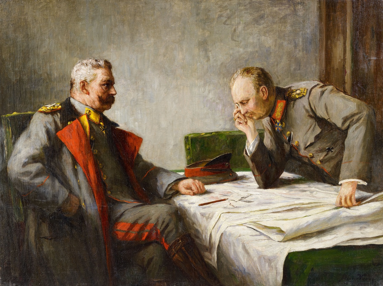 총사령관 바풀 폰 힌덴부르크와 참모장 에리히 루덴도르프가 작전을 협의하고 있습니다.