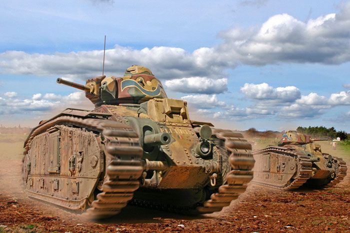 중전차인 샤르Char B-1과 소뮤아Somua의 47mm 주포는 당시 최고의 화력이었고 60mm 장갑을 둘렀다. 이 전차들은 신뢰성 높은 엔진과 서스펜션으로 다른 전차보다 우수한 설계였다. 그렇지만 전투공간인 포탑에 한 명만 탑승할 수 있어 지휘관/사수에게 과도한 부담을 주었다. 그리고 프랑스 설계자들은 기계와 싸워야 하는 병사들의 요구를 충분히 고려하지 않았다.