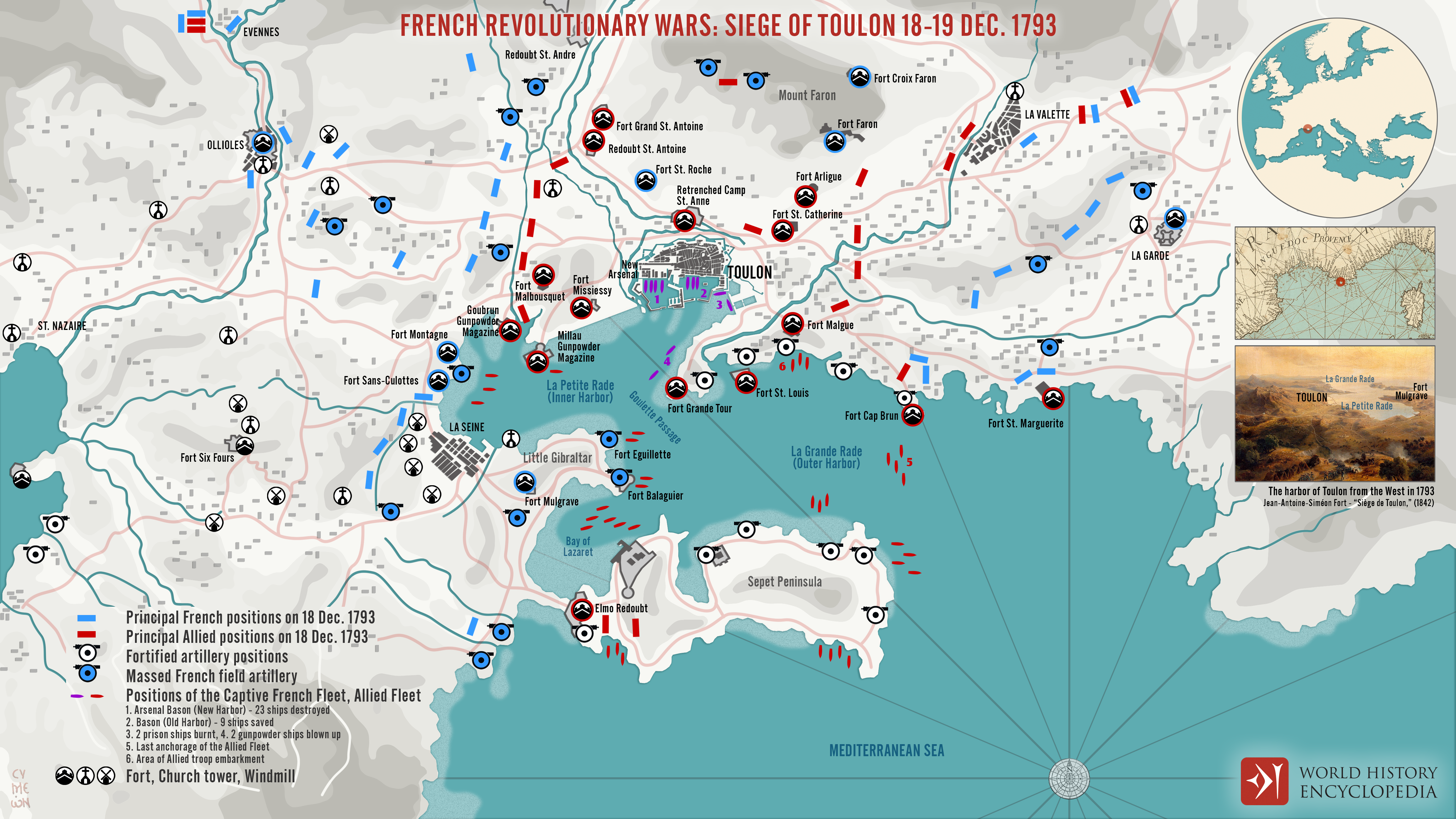 프랑스 리비에라의 항구 도시 툴롱은 혁명에 반대하고 왕정을 지지했으며, 영국을 불러들여 그곳에 정박해 있던 프랑스함대를 장악하게 했다.